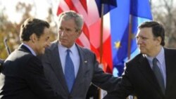 Сүрөттө: Франциянын президенти Николя Саркози, АКШнын президенти Жорж Буш жана Еврокомиссиянын жетекчиси Жозе Мануэл Баррозу.