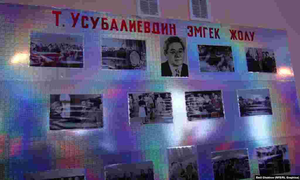 Музейге Усубалиевдин эмгек жолун баяндаган сүрөттөр, гезит журналдарга жарыяланган макалалары жана өзү жазган китептери коюлган.