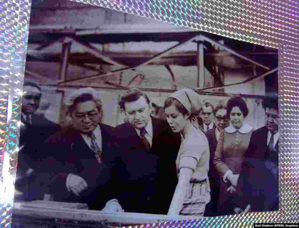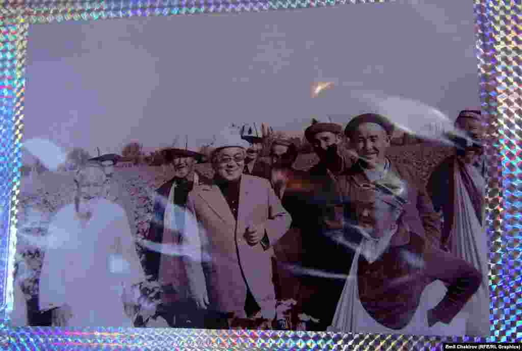 Советтер Союзунун Коммунистик Партиясынын Борбордук Комитетинин башкы катчысы Никита Хрущев Турдакун Усубалиевге сыйлык тапшырууда.