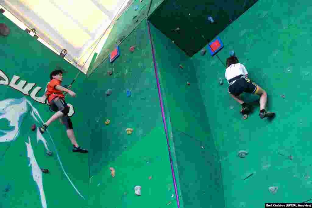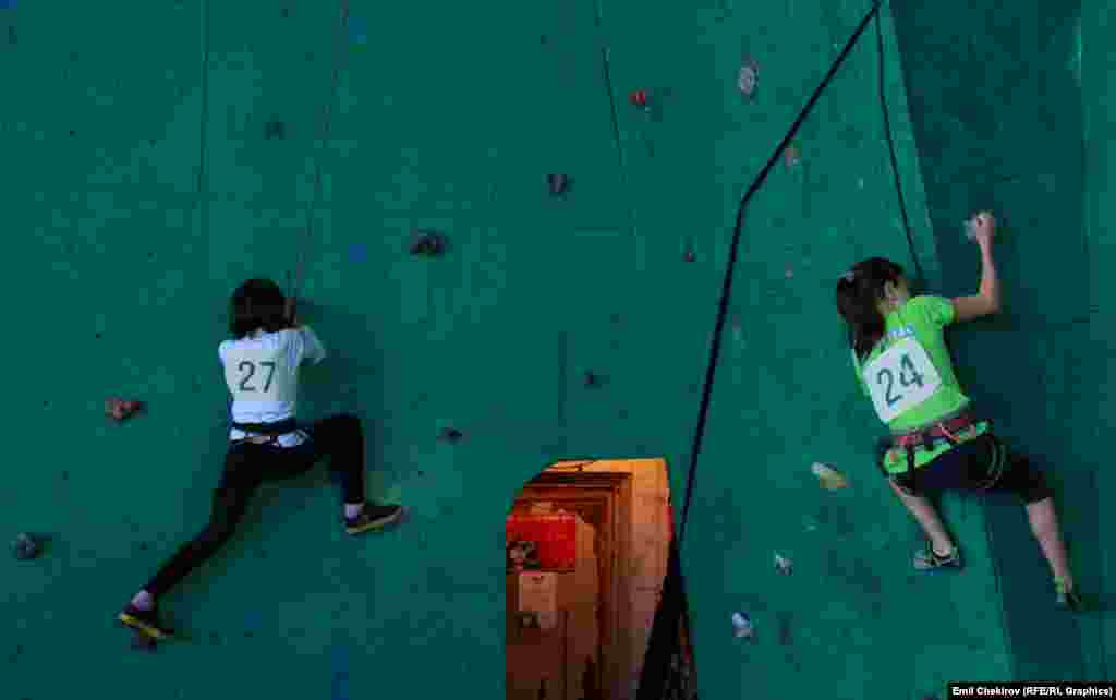 Мелдештер кыздар жана эркектер арасында ылдамдык, татаалдык жана боулдеринг ыкмаларында өтүүдө.