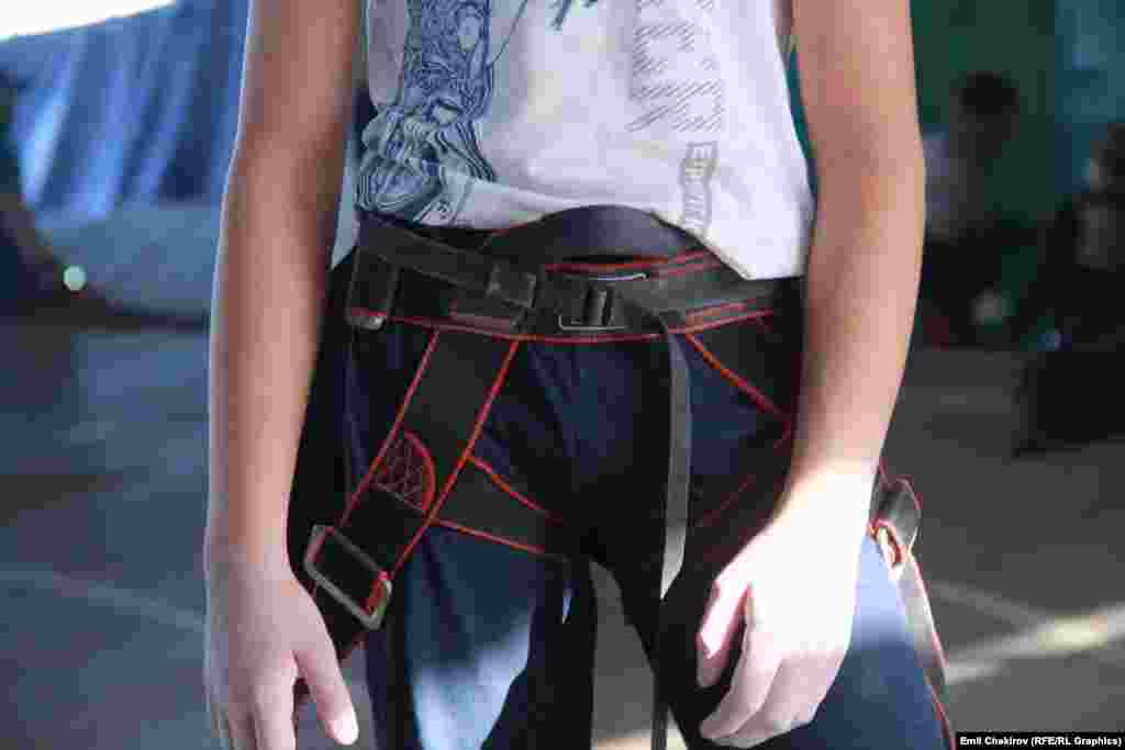 Жарышка чыгаар алдында система деп аталган коопсуздук кур арканга бекитилет.