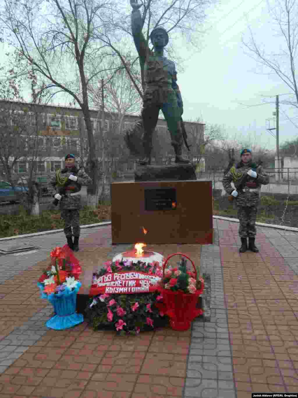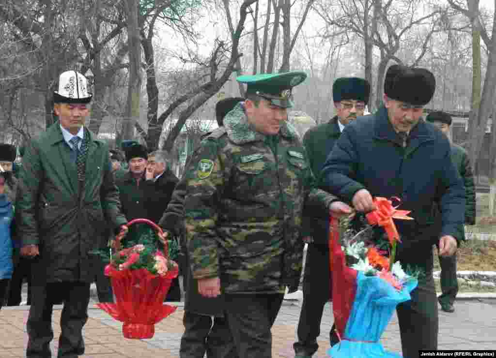 Салтанаттын жүрүшүндө Ооган согушунун ардагерлеринин мемориал-эстелигине гүлчамбарлар коюлуп, куран окулду.