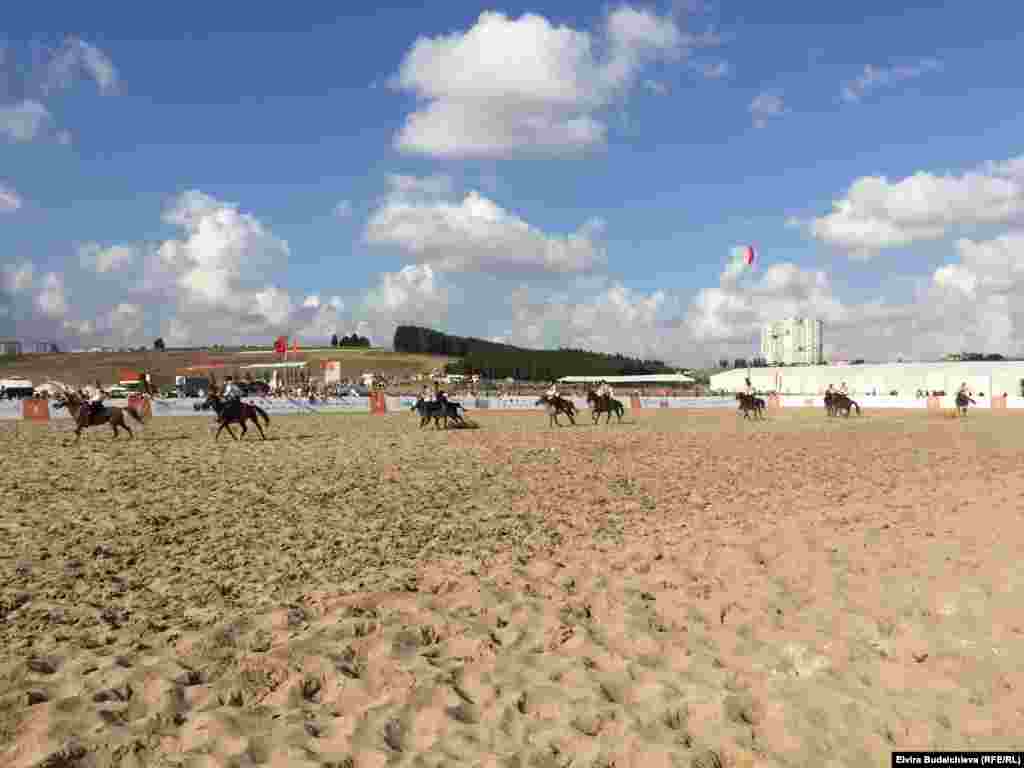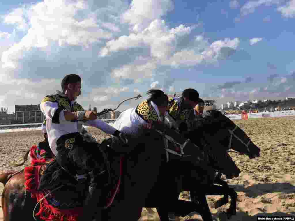 Түркиянын Ван аймагынан келген этникалык кыргыздардын тобу көрүүчүлөргө көкбөрү таймашын көрсөтүштү.