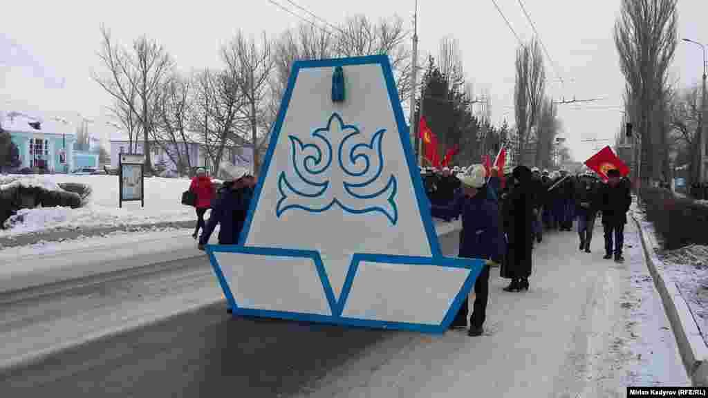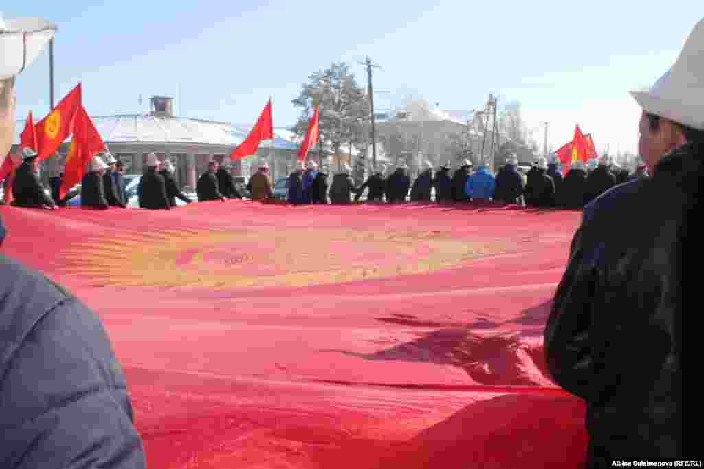 Таласта флешмоб уюштурулуп, студенттер Бердике Баатыр жана Мырзалиев көчөлөрүнөн кесилишинен баштап борбордук аянтка чейин желектерди көтөрүп, жөө жүрүш жасады.
