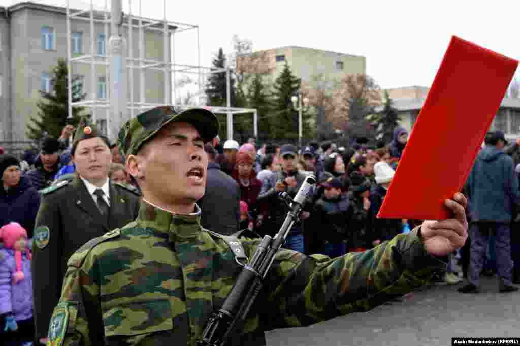 1-апрелде Каракол шаарында Мамлекеттик чек ара кызматынын Ысык-Көл облусунун окуу борборундагы 248 жаш жоокер аскердик ант берди. Талас, Чүй, Нарын, Ысык-Көл облустарынан чакырылган жаш жоокерлер Мамлекеттик чек ара кызматынын Ысык-Көл облустук башкармалыгына келгендерине эки жума болгон. Бул жерде эки ай даярдыктан өткөн соң, алар бөлүктөргө кызмат кылууга жөнөтүлөт.