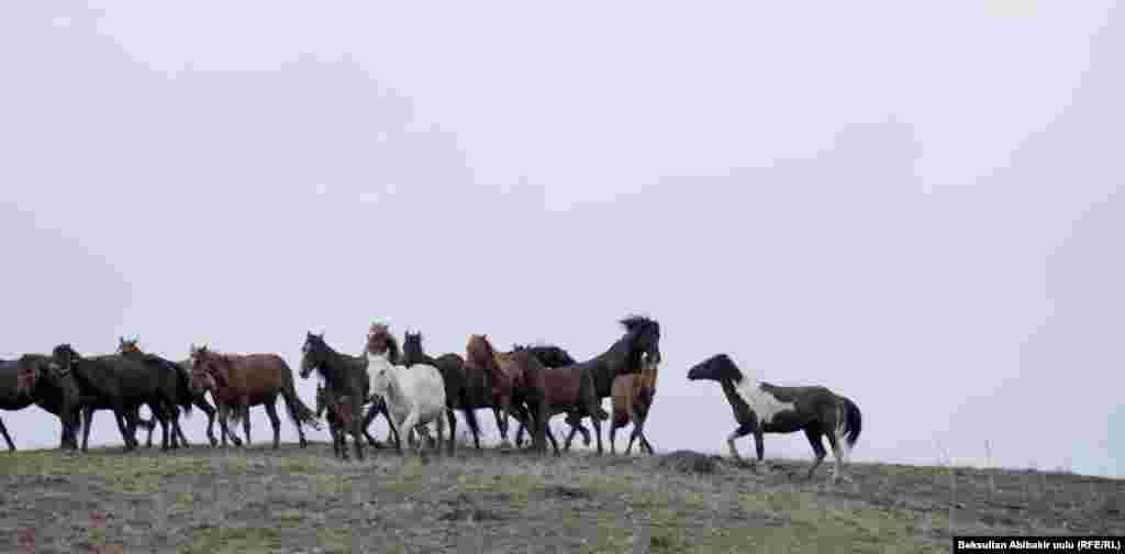 Жылкычы Казыбек тоодогу жылкыларын издеп жүрөт.