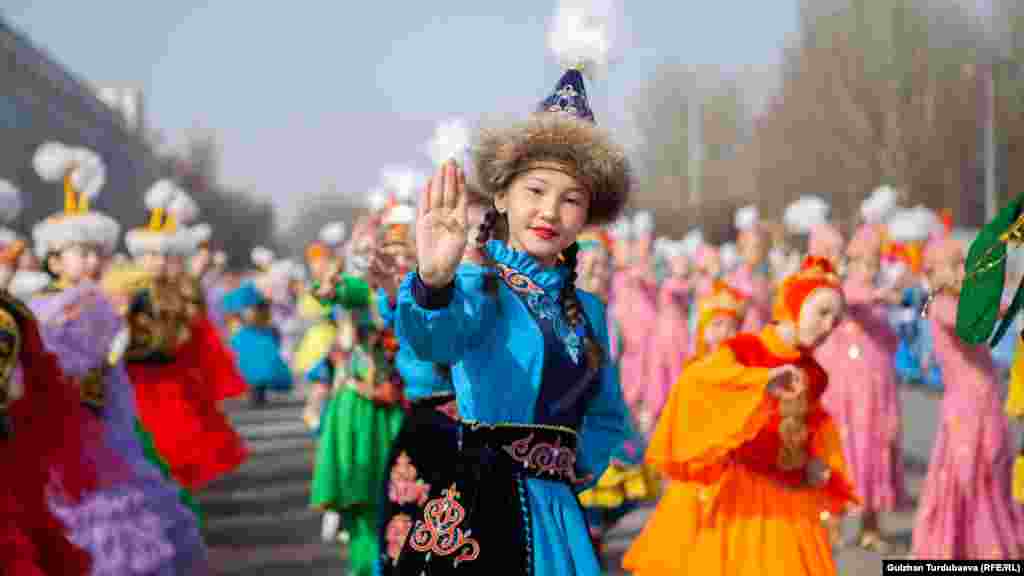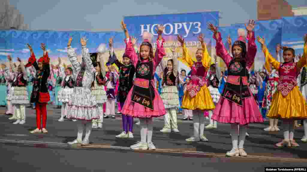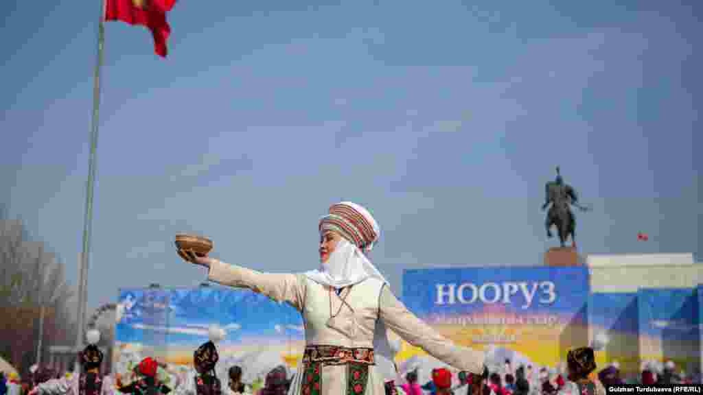 "Ала-Тоо" аянтында шаардагы чыгармачыл топтордун катышуусунда Нооруз майрамына арналган театралдаштырылган оюн-зоок программасы өтүп жатат.