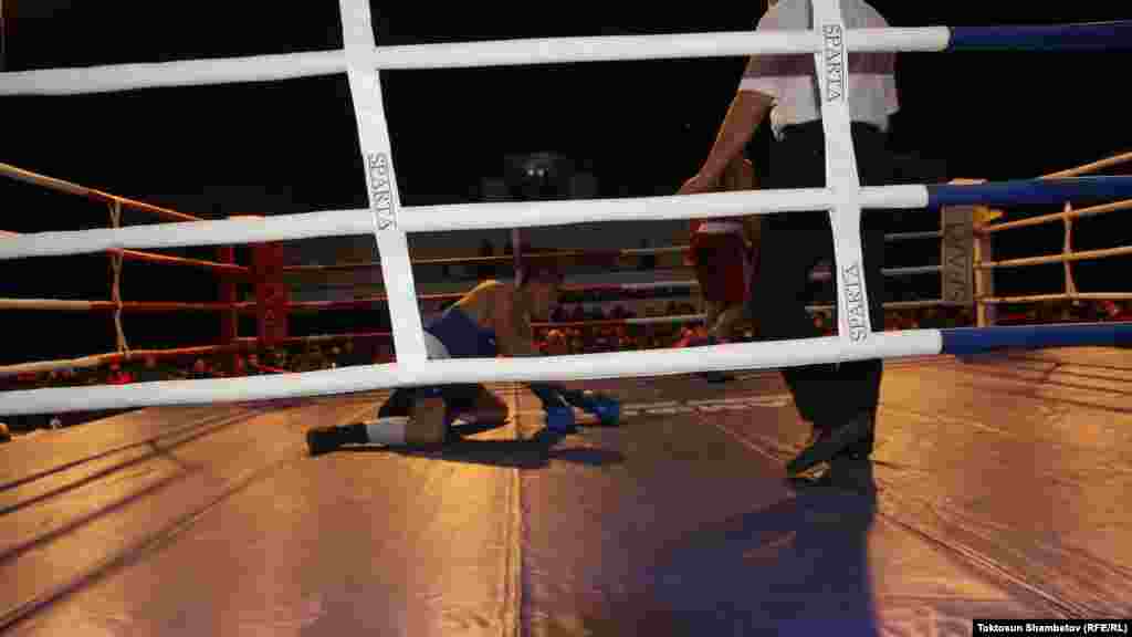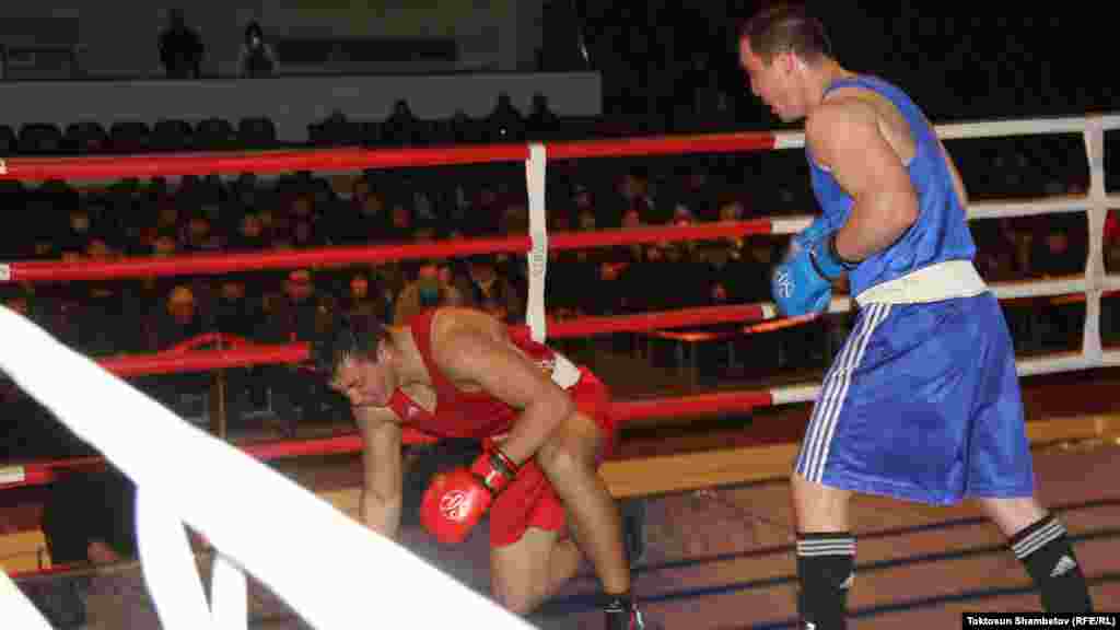 Азия чемпиону, тажрыйбалуу мушкер Азат Үсөналиевге (кызыл формачан) Ысык-Көл облусунан келген Нуржигит Дүйшөбаев татыктуу атаандаш болуп берди. Алар 52 кг. салмакта күч сынашып, Үсөналиев жеңип алды.