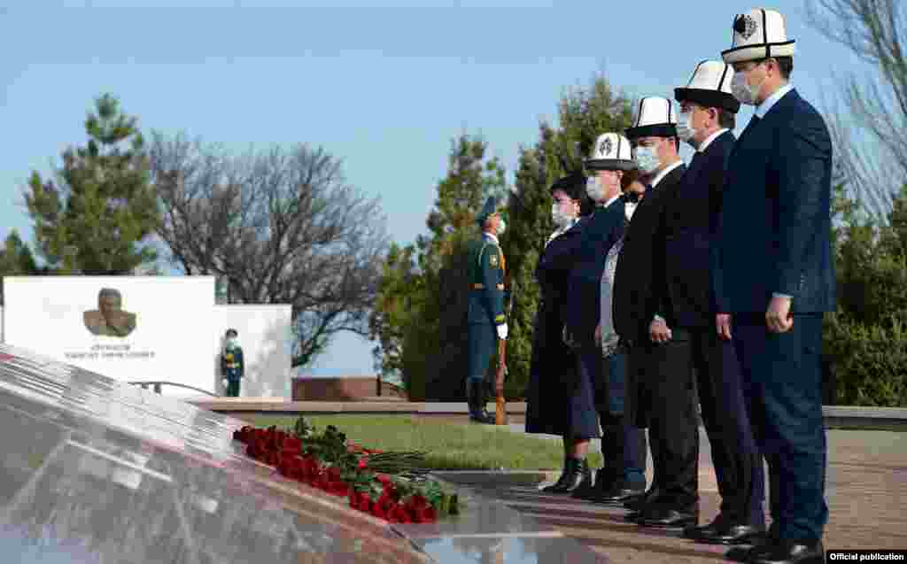 Президент Садыр Жапаров баштаган топ апрель окуяларынын курмандыктарын эскерүү үчүн "Ата-Бейитке" барды.