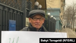 Укук коргоочу жана жарандык активист Өндүрүш Токтонасыров бүгүн, 7-октябрда Орусиянын Кыргызстандагы элчилигинин имаратынын алдына тынч митингге чыккан.