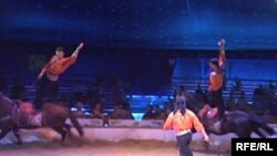 Борбор азиялык байыркы дарчылар өнөрү менен Европалыктарды ошентип кыргыз циркачтары тааныштырууда. Зым аркан үстүндө шашпай баскан жаш балбан Абдынын ийнине Бактияр Имакеев чыгып, анын ийнине Манат агайдын келинчеги Дилбар турганда, узун аркан үчөөнү бекем кармап, жерге кулатпаса экен деп ичибизден келме келтирип отурдук.
