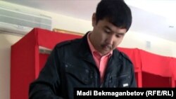 "Ак шумкардын" лидери Т.Сариев шайлоодо добуш берүүдө. 10-октябрь, 2010-жыл.