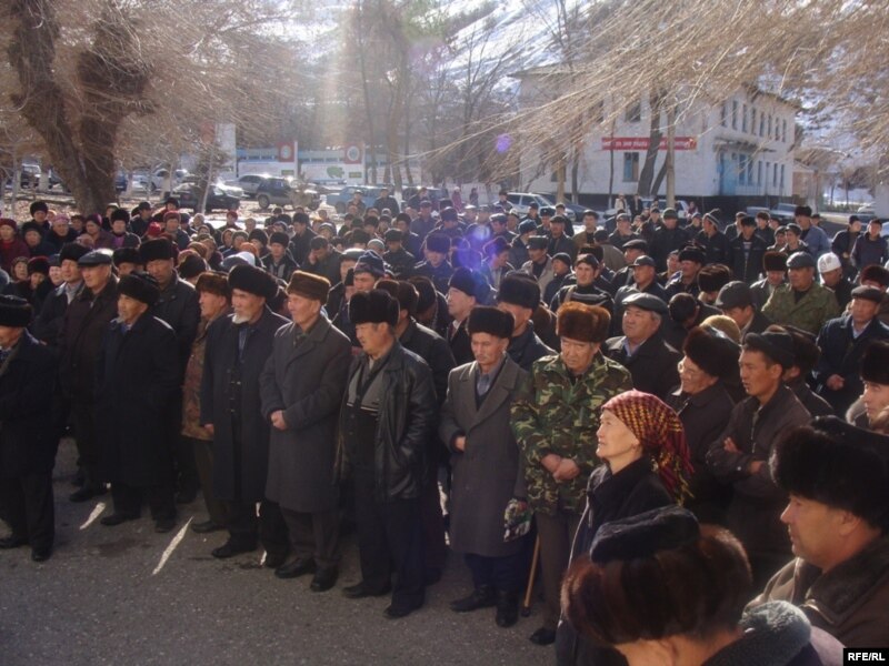 Шаардын маданият үйүнүн алдына 300- 400 дөй адам чогулду. Сузак районунун акими Тажимамат Шаболотовдун айтымында, барс жылынын алгачкы айында катталган окуяга байланыштуу иликтенип жаткан кылмыш иши менен тааныштыруу максатында Көк- Жаңгак шаарынын тургундары жыйынга чогулду.