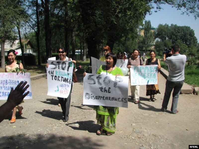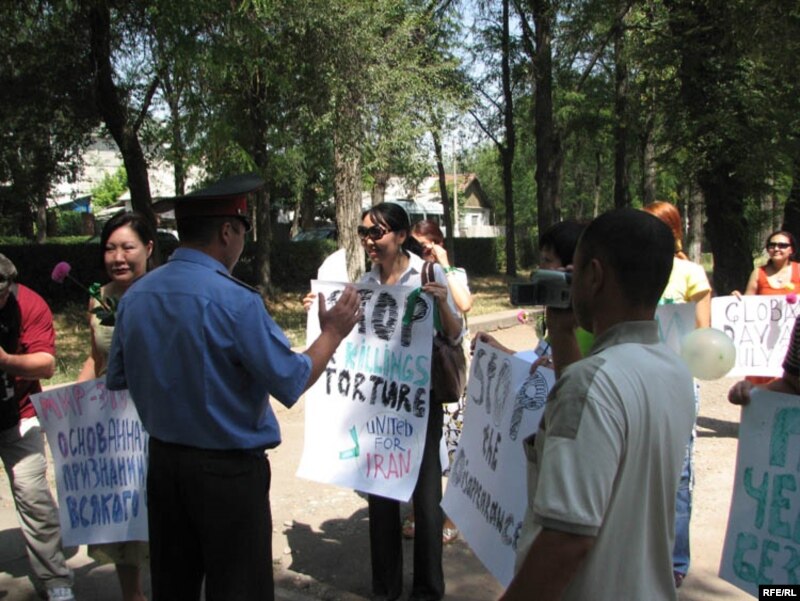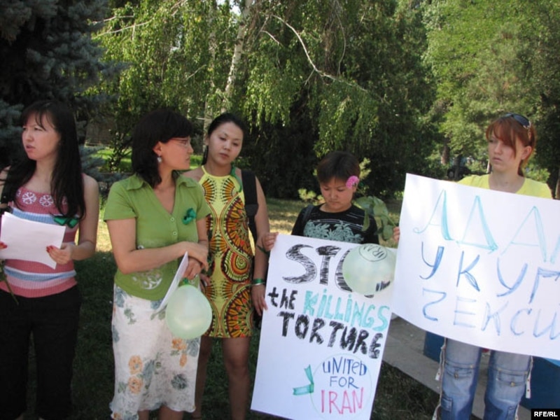 Бишкектеги Максим Горькийдин эстелигинин жанында бир катар укук коргоочулар, жаштар, журналисттер Ирандагы президенттик шайлоодон кийинки тополоңдо камалышкан 4 миңден ашуун элдин, 40тан ашуун журналисттердин камалышына нааразылык билдиришип, ал жерде адам укуктарынын сакталышына Бириккен Улуттар Уюмун кийлигишүүгө чакырды. Кыргызстандык укук коргоочулар колдоруна “Иранда миңдеген адам жабыркады, унчукпай коюуу - эркиндикти тебелөө”, “Адам укугу чексиз”, “Биз эркиндик, теңдик, боордоштук үчүн!” деген жазуусу бар плакаттарды кармап турушту.