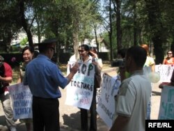 Укук коргоочулар кайрылууну Бишкектеги Иран элчилигине алып бара жатышканда алардын алдынан Биринчи май райондук ички иштер бөлүмүнүн жетекчисинин орун басары, подполковник Таалайбек Шатманов чыгып, акциянын катышуучуларынын колундагы плакаттарды чогултууну буюруп, Иран элчилигине барууга болбостугун билдирди.