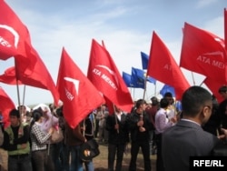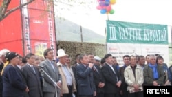 Бишкектин жанындагы Арашан айылында өткөн III Элдик курултай Алмаз Атамбаев менен Исмаил Исаковдун президентикке талапкердигин Бириккен Элдик Кыймылдын атынан бир добуштан көрсөттү. 2009-ж., 25-апрел. MiT.