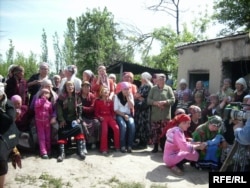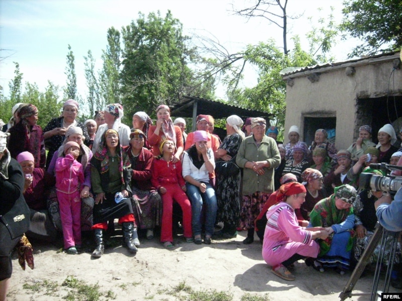 Бердибек Курамаевди аялы (ортодо кара жоолук салынган) жана кыздары жоктоп ыйлап жатышат.
