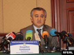 Убактылуу өкмөттүн төрайымынын орун басары Өмүрбек Текебаев Конституциянын жаңы редакциясында Кыргызстанга парламентттик башкаруу системасы тандалып алынганын, адам эркиндигин жана сөз эркиндигин коргоого, демократиялык жол менен кетүүгө ылайыкташтырылып жазылганын билдирди.
