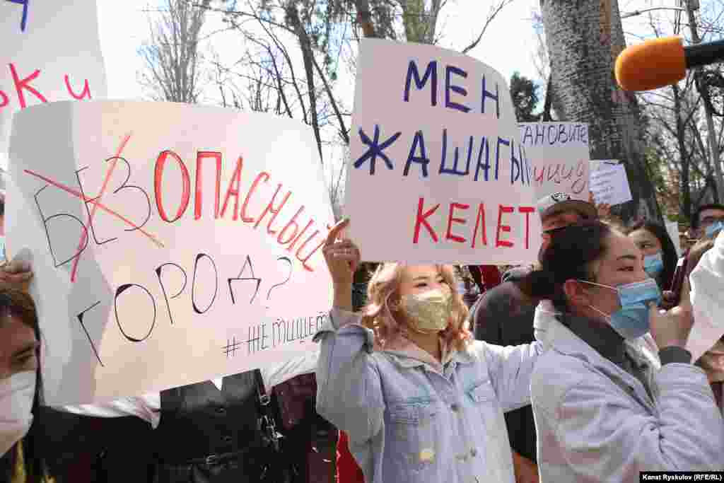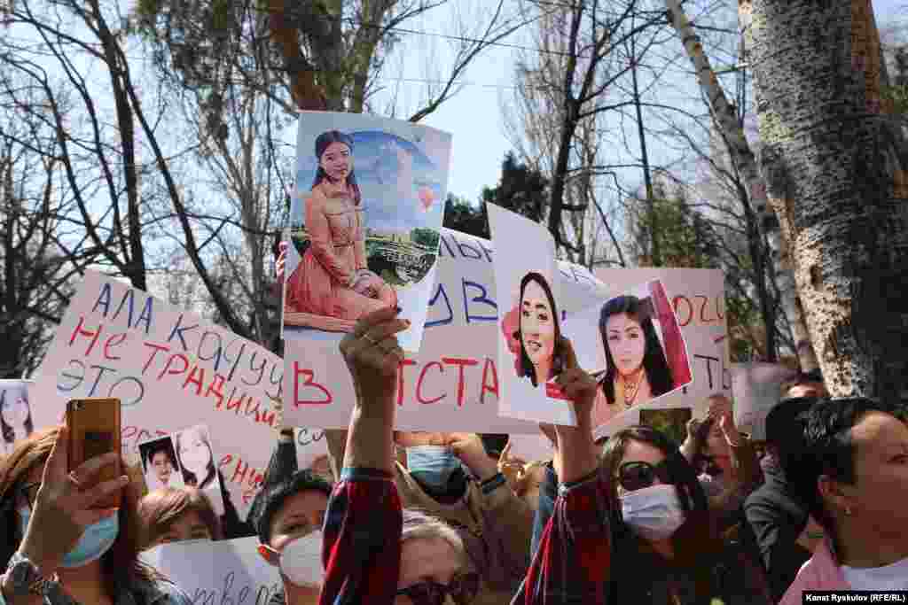 Бишкекте Ички иштер министрлигинин имаратынын алдында жарандык активисттер, блогерлер, укук коргоочулар, шаар тургундары Айзада Канатбекованын өлүмүнө байланыштуу нааразылык акциясына чыгышты.