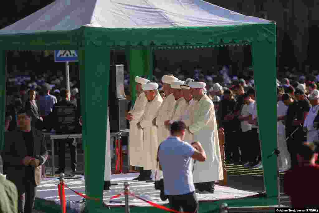 Президент Садыр Жапаров аянтта эл менен чогуу майрамдык намаз окуду. Аны Министрлер кабинетинин төрагасы Акылбек Жапаров жана Улуттук коопсуздук комитетинин башчысы Камчыбек Ташиев коштоп келди.