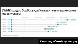 2020-жылы кыргыз гезиттеринин нускасы азайып кеткен. Соңку жылдары кирешесинен чыгашасы көбөйгөн басылмалардын ишине пандемия да чоң сокку урду.