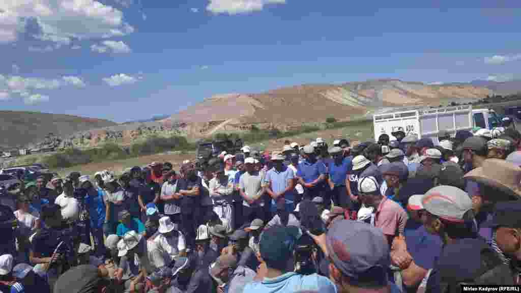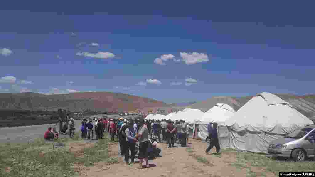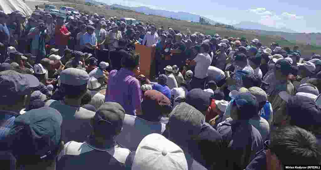 Нарындагы Кара-Чий айылынын жанына чогулган эл Солтон-Сары жайлоосундагы алтын кенди жабууну талап кылып турушат.