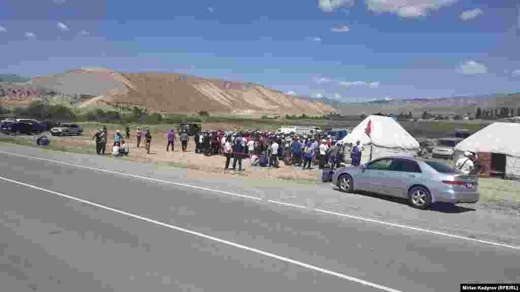«Азаттыктын» Нарындагы кабарчысы Мирлан Кадыровдун айтымында, жергиликтүү тургундар жол боюна тогуз боз үй тигип алышкан. Учурда боз үйлөрдүн биринде Ички иштер министрлигинин жана өкмөттүн өкүлдөрү сүйлөшүүлөрдү жүргүзүүдө.