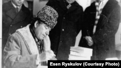 Чыңгыз Айтматов эшиктен баш багары менен жубайынын келбей калганын билдирди.