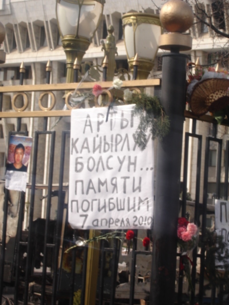 Эң башында бир бала, 16 жашта болсо керек, колуна “Бакиев кетсин” деген плакатты кармап күлүп-жайнап баратканын көргөм. Кийин ал кансырап жерде жатты.