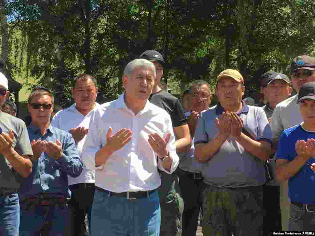 Экс-президент Алмазбек Атамбаев Чүйдүн Кой-Таш айылындагы үйүндө 26-июнь күнү өз тарапкерлеринен түзүлгөн «элдик штабдын» мүчөлөрү менен жолукту.