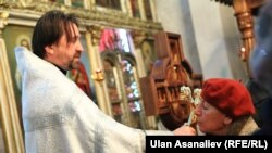Кыргызстандагы ортодокс христиандар (православдар) Иса пайгамбардын туулган күнүндө Бишкектеги орус православ чиркөөсүнө келип, диний жөрөлгөлөрүн жасашты.