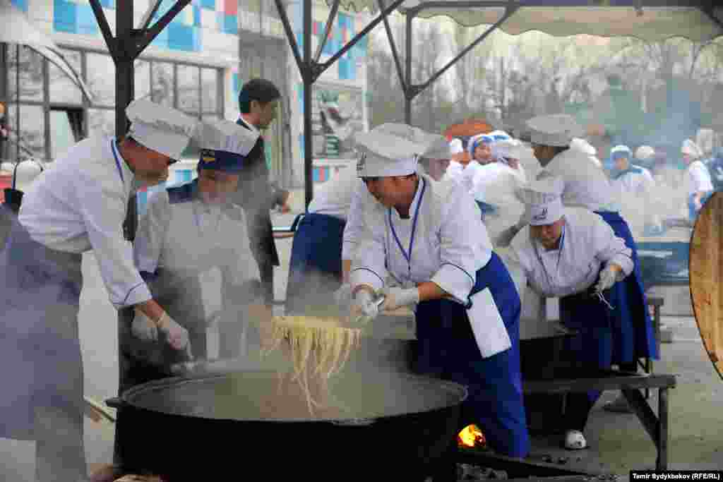 Гиннес рекорддор китеби үчүн жасалчу бир тонналык бешбармакты даярдоо Бишкектин “Аю Grand Comfort” соода жайында өттү.