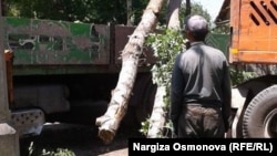 - Жөн жерден келип эле кесе башташты. Эч кимге алдын ала айткан жок. Машинелерди эвакуаторго жүктөп салышты. Канча жылдан бери өсүп турган жакшынакай дарактарды кыйып жатышат. Эл дарактарга тийбөөнү талап кылып жатат, - деди жергиликтүү тургун Асан Ташиев.