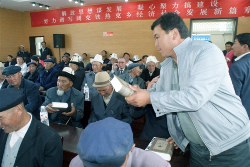 "Манастын бабаларын" конокторго таркатуу мезгилинен сүрөт, Көк-Терек айлы, Кытай
