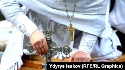 Ыйык чокундуруу жөрөлгөсү Иса пайгамбардын туулган күнү майрамдалган соң белгиленет. Ош шаарындагы православдар. 2015-жыл