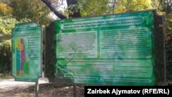 - Азыр сиз Түндүк Америкада өскөн даракты көрүп турасыз. Ал Кыргызстандын климатына эң сонун ыңгайлашты. Биздин корук дендрарий деп аталат. Бул статуска 1968-жылы ээ болгон. Дендрарий деген сөз көркөмдүк үчүн өстүрүлгөн сейрек кездешүүчү дарактар эгилген аймакты түшүндүрөт. Бул жерден эки миңден кем эмес жергиликтүү жана башка континенттерден алынган ар кандай  формадагы дарактардын, бадалдардын жана чырмалып өсүүчү өсүмдүктөрдүн түрлөрүн көрөсүз. Өсүмдүктөр ботаникалык-географиялык тартипте Кыргызстандын, Борбор Азиянын, чет Азия мамлекеттеринин, Ыраакы Чыгыштын, Европанын, Сибирдин, Крым менен Кавказдын, Түштүк Американын секторлорунда жайгашкан.