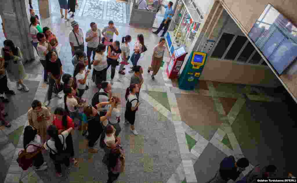 Англис тилин үйрөнүүнү каалаган жаштар көп. БГУнун чет тилдер бөлүмүнө бюджетке өтүүнү каалаган абитуриенттер талондорун кутучуга салуу үчүн кезек күтүп турушат.