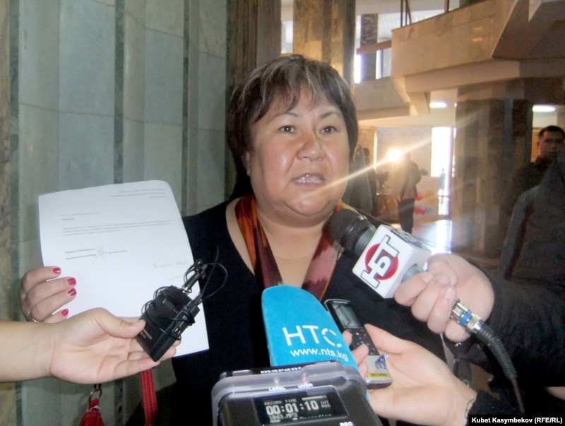 Ал ортодо Нариман Түлеевдин жарыштан четтетилишине нааразы болгон 200 чамалуу адам Боршайком имаратынын жанына чогулуп келишти. Митингге чыккандардын бири Зейнеп Абдиева: