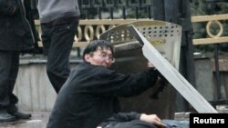 - Мен риэлтер болуп иштейм. Биздин кеңсе кесиптик кошуундар имаратынын жанында. Саат 11ге чукул биздин кеңседен 15 метр алысыраак милициянын 2 автоунаасы токтоп, биринчисинен 6, экинчисинен 7-8 киши чыкты. Баары кара кийимчен, куралчан экен. Алардын үчөө каскасын чечкенде бири сары, скандинав өңдүү, экинчиси азиат, үчүнчүсү афроамерикалыктай көрүндү. Милиция аларга кесиптик кошуундар үйүнүн чатырын көрсөттү. Калган экөө Логвиненко-Чүй тарапка, калганы Ак үйгө кетишти.