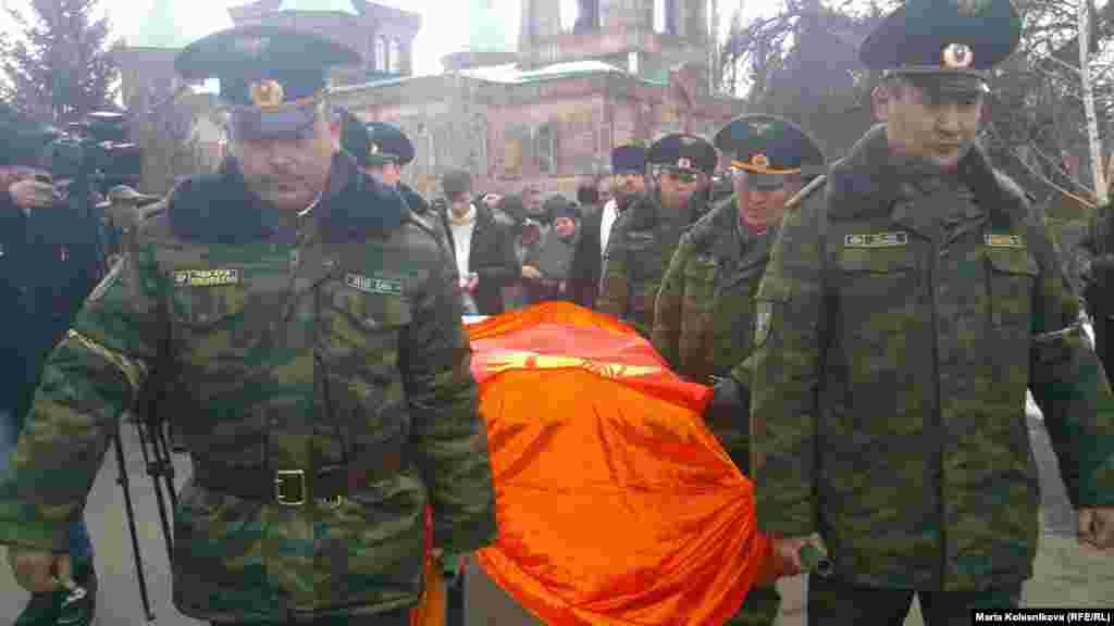 Ысык-Көлдө кыргыз-кытай чек арасын бузуп киргендер менен кармашып жатып каза тапкан Александр Барыкиндин сөөгү өзгөчө сый-урмат менен жерге берилди.