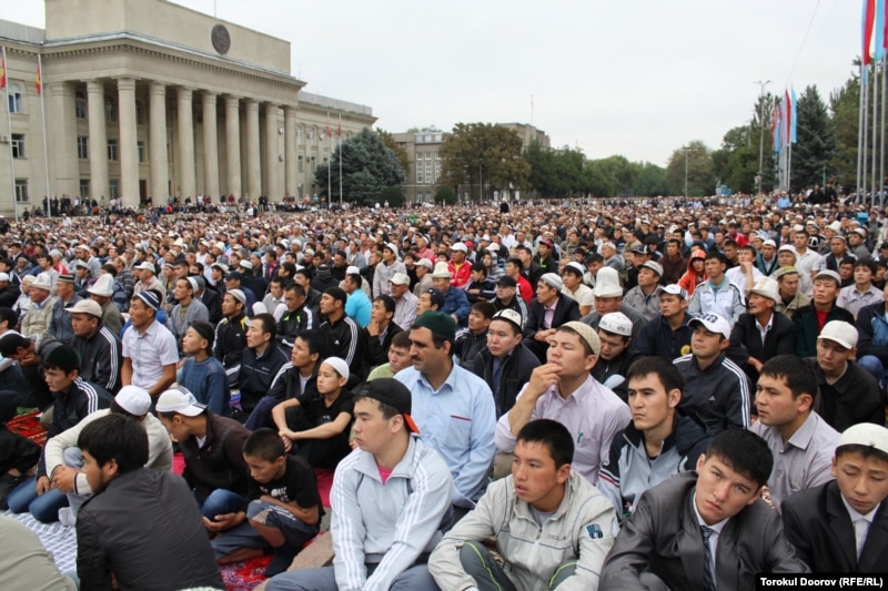 Премьер-министр Алмазбек Атамбаев айт намазга чогулгандардын алдында сөз сүйлөөдө, 30-август.