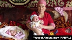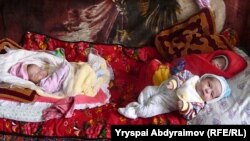 - Бул үч эмдин аттары – Жаныш, Байыш, Үпөл. Үчөө тең жакшы, салмагына салмак кошулуп атат. Ооруп аткан балам да жакшы болуп калды, Жалал-Абаддан врачтар келип көрүштү. Бир врач өз жанынан дары алып берди. Бүгүн булар буйруса эки айлык болду. Азыр жети баланы күйөөм экөөбүз эле карап атабыз. Кыйынчылык башыбыздан өтүп атат. Чыдайбыз да. Азыр тогузубуз бир бөлмөдө отурабыз, айына беш жүз сомдон төлөйбүз. Мен жаш кезимде эгиз кыз төрөп, аларга жынсы, кызыл беретка кийгизип, ээрчитип келсем дечү элем. Кудай ошо тилегимди берди. Эми азыр жашында кыйналып атабыз, бир аз чоңоюшса, өзүбүздү өзүбүз эптеп калабыз. Сүт жетишпейт үчөөнө, экөөнө жетмек.