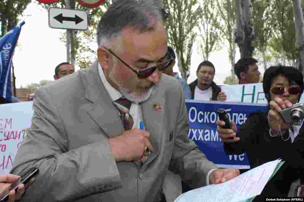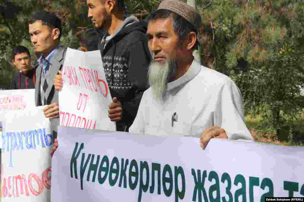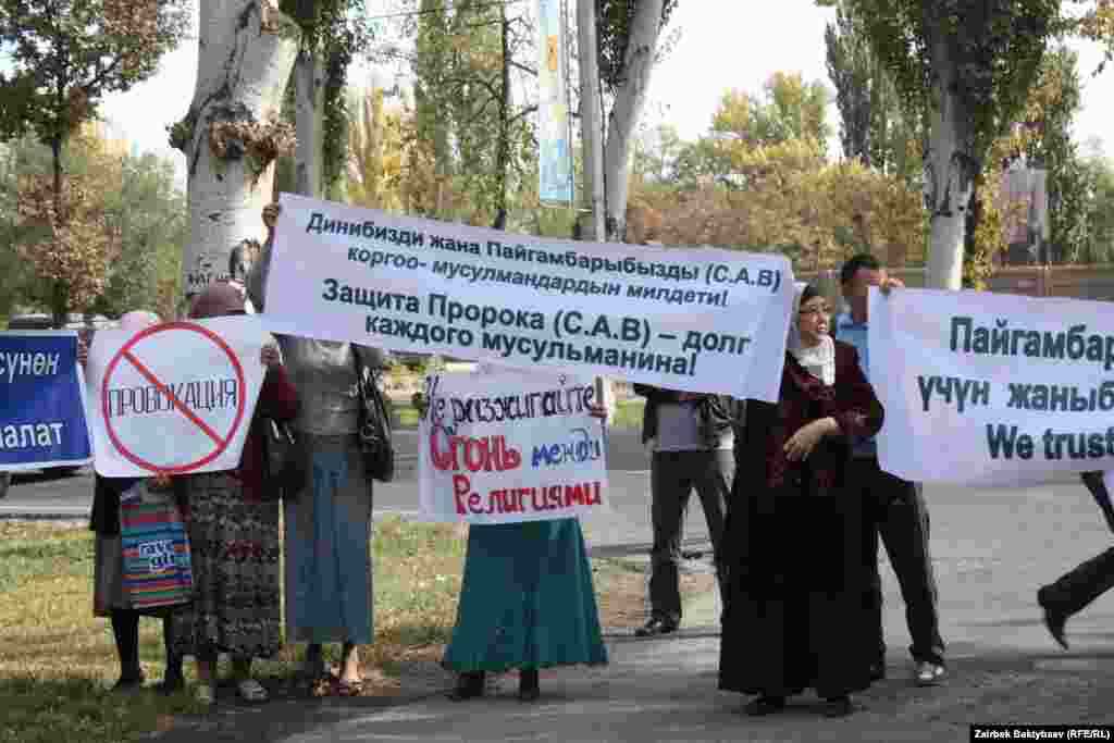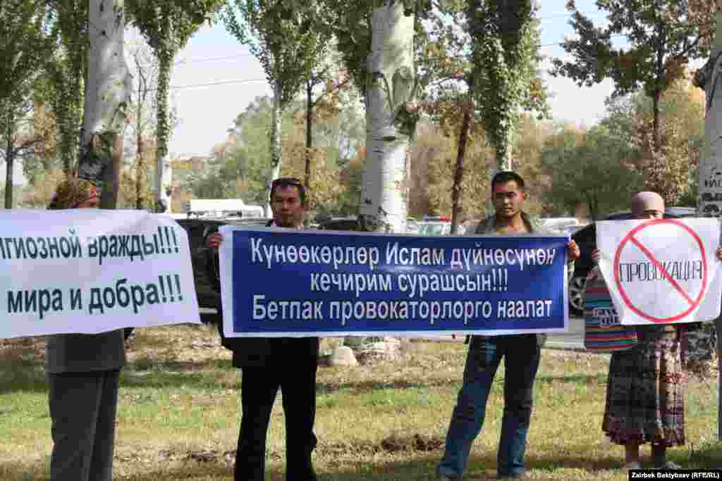 “Бейкүнөө мусулмандар” тасмасына нааразылык билдирген 100 чакты жаран бүгүн Бишкектеги АКШ элчилигинин алдында митингге чыкты.
