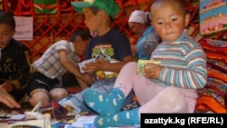 Эжекейин ээрчип ыр созуп жаткан чыт курсактар жайлоолоп чыккан малчылардын балдары.