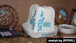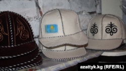 Башка ушундай дүкөндөрдөн "Казакстан" деген жазуу жана бул өлкөнүн желеги тартылган калпакты жана жайкы баш кийимди таба аласыз.
