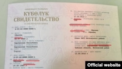 13. Бул жөнүндө никелешүү тууралуу актыларды каттоо китебине - Бул жөнүндө Нике тууралуу күбөлүктү каттоо китебине жазылды.