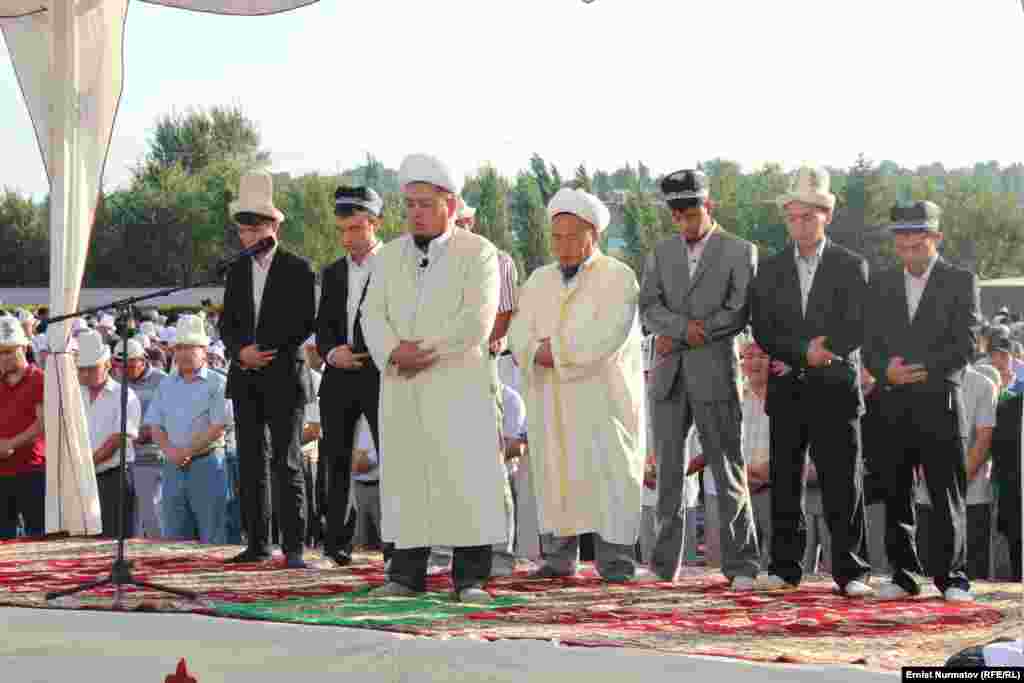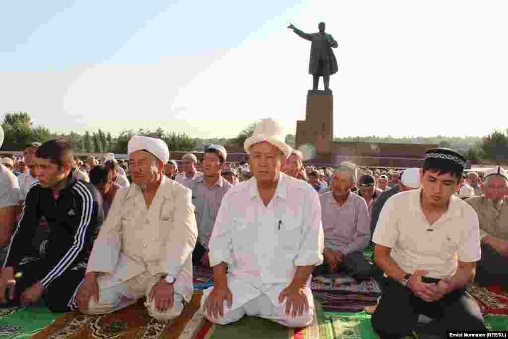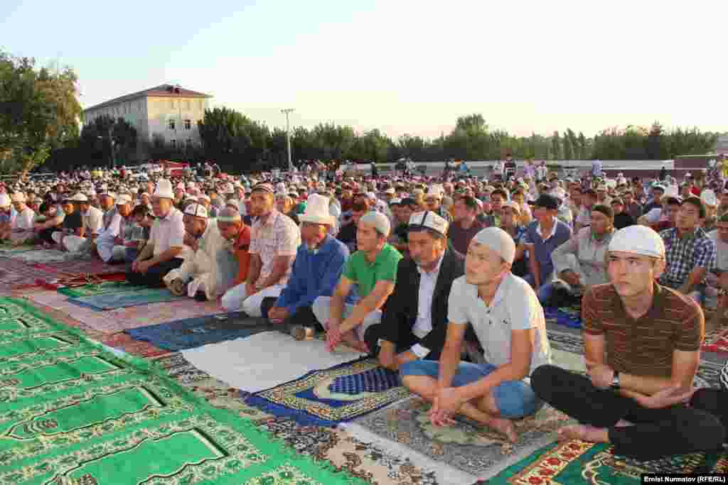 Ош шаарында акыркы жети жылдан бери быйыл биринчи жолу Айт намазы борбордук аянтта окулду. (Эрнис Нурматовдун фотобаяны)
