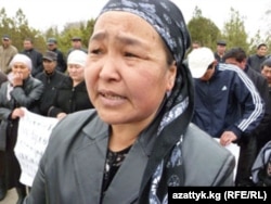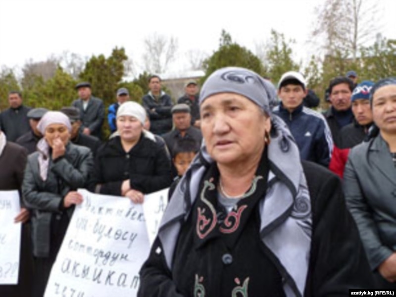 - Буга окшогон укук коргоочунун бизге кереги жок. Эмне үчүн менин балдарымдын укугун, биздин укугубузду жана уулумдун жетим калган төрт баласынын укугун эмнеге коргобойт? Ошо укук коргоочулар ошо тополоңдон кийин качып кетип, издөөдө жүргөн төрт-беш адамды эмне үчүн телевизордон айтышпайт? Мен Жогорку Соттун эки айдан бери жыйынтык чыгарбаганына өтө катуу нааразы болуп, мыкаачылык менен өлтүрүлгөн баламдын достору, туугандары, балдары, кошуна- колоң, жалпы эл менен бирге айласыздан чыктым акцияга...
