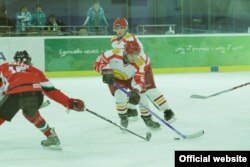 Кыргыз хоккейчилери Бириккен Араб Эмираттарынын хоккейчилери менен.