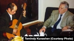 Чынгыз Айтматов күүчү, гитарачы Темираалы Кунашевди Брюсселге чейин чакырып, күүлөрүн ынтаа коюп уккан.